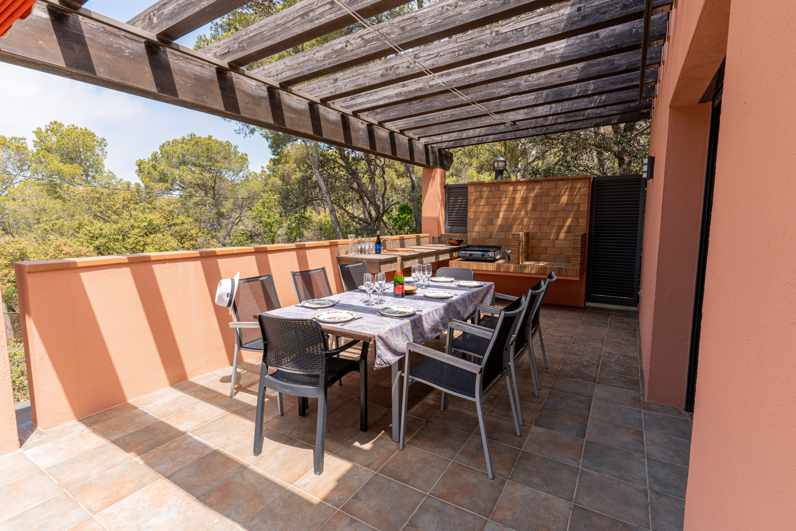 Sie werden zweifellos die meiste Zeit draußen verbringen, auf einer der Terrassen entspannen, im Lounge-Set chillen oder auf einer der Sonnenliegen rund um den wunderschön geformten Swimmingpool. Da der Garten von den typischen Pinien umgeben ist, die Sie überall an der Costa Brava finden, gibt es viele schattige Plätze.