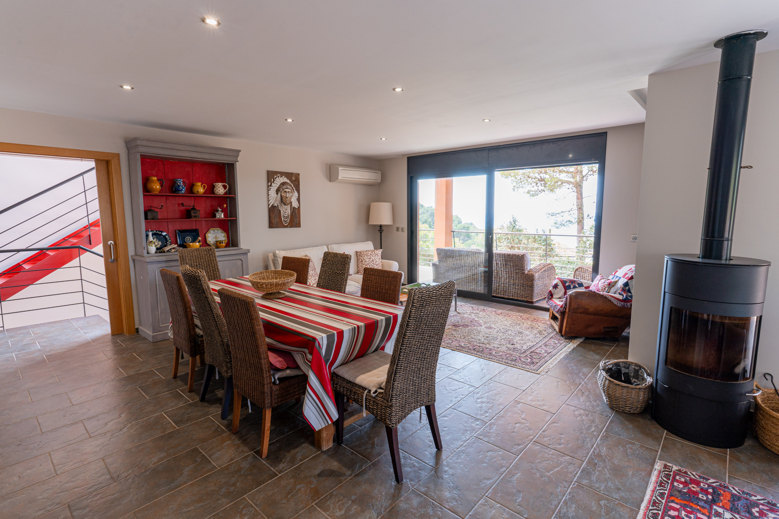 Ein riesiges Wohnzimmer mit offener, voll ausgestatteter Küche, großer Esstisch sowohl drinnen als auch draußen. Schöner Grillplatz auf der Terrasse für Mahlzeiten im Freien.